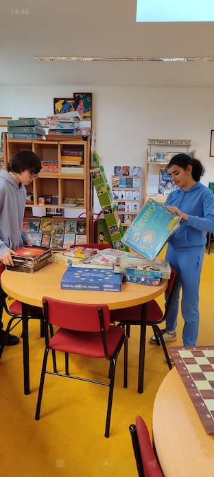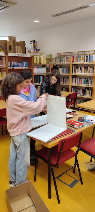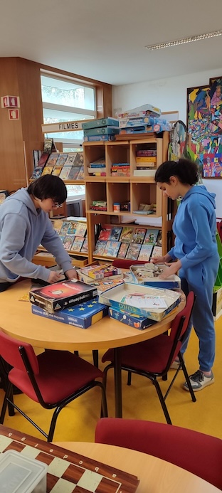 Os Amig@s da Biblioteca da EBS de Caminha têm realizado neste início de 2026 um magnifíco trabalho de biblioteconomia, sempre sob orientação da equipa da BE, particularmente das AO Helena Mendonça e Gorete Moreno. Como mostram as imagens, as atividades são diversas, da ordenação dos livros em estante por ordem alfabética, à reparação das caixas dos jogos de mesa, passando pelo carimbagem e registo das obras que entram no fundo documental ou têm vindo a ser objeto de abate.