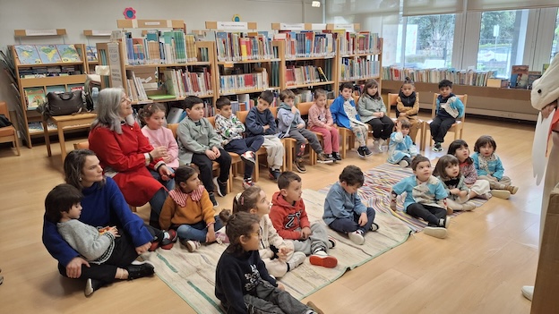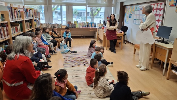 A professora Sónia Domingues, em regime de voluntariado, voltou à Biblioteca da EB1/JI de Caminha, desta vez para contar às crianças das salas das educadoras Teresa Garrido e Cristiana Leite, a história de uma nuvem, a partir do livro Historia de una nube, de Eleanora Garriga e Ana Gómez (Lecturita Ediciones). De acordo com a sinopse desta obra infantil, é a história de uma pequena nuvem que, às vezes, gosta de se afastar um pouco para ficar tranquila, mas sempre que se afasta as outras nuvens ficam alerta e cercam-na com conselhos. Há algo errado em não querer ser como os outros? Existe uma maneira melhor do que outra? Esta pequena nuvem voa em busca de respostas, embora talvez não estejam todas no céu...