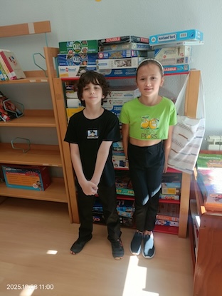 Após alguns anos de ausência, regressaram à EB1/JI de Caminha os Amig@s da Biblioteca, um grupo de alunos que mantêm uma relação especial com esta Biblioteca da RBE e ajudam a AT municipal ali em serviço, D. Alda Branco, a desempenhar tarefas variadas: arrumar livros e jogos, ajudar os utentes mais jovens, decorar a BE nos momentos festivos, etc. Para coordenadores desta nova série de Amig@s, foram eleitos pelos seus colegas a Rita e o Miguel, ambos alunos do 4ºano, que têm agora uma responsabilidade acrescida. Parabéns e bom trabalho aos dois!