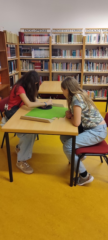 Os Amig@s da Biblioteca da escola-sede estão imparáveis e, sob a orientação das AO Helena Mendonça e Gorete Moreno, estão a fazer manualmente novos e funcionais tapetes para os ratos dos computadores da Biblioteca. As máquinas são já muito velhinhas, mas os ratos serão ao menos novos!